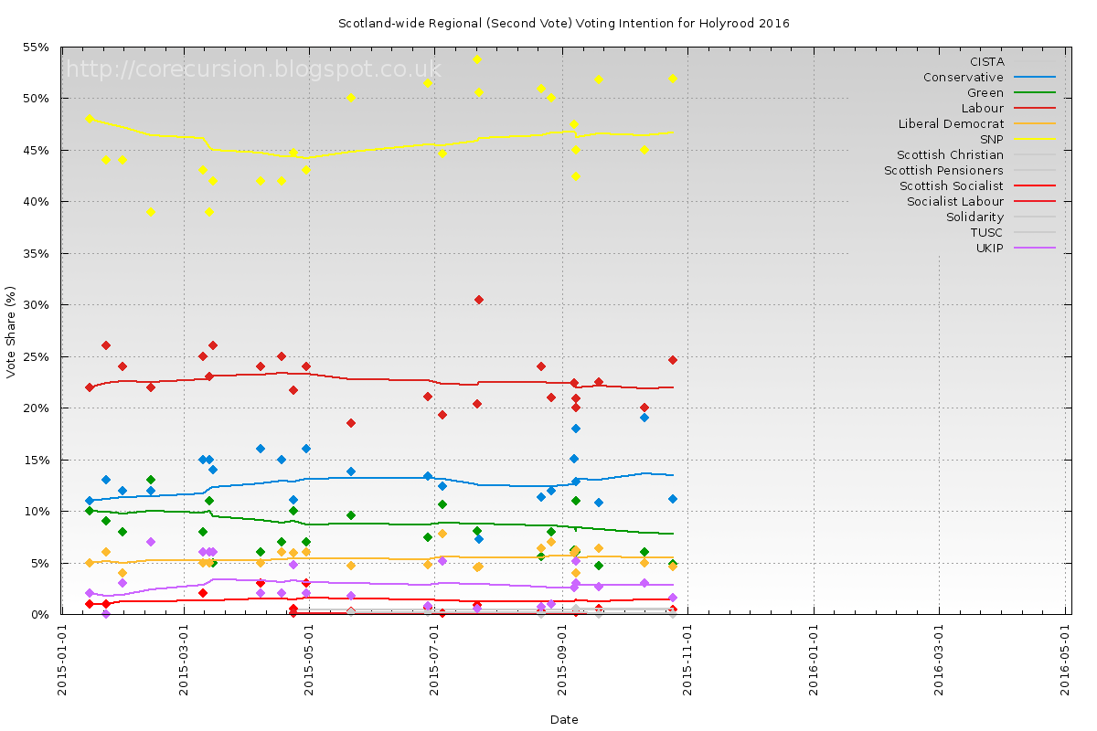 | Scotland-wide Regional (Second Vote) Voting Intention for Holyrood 2016 |